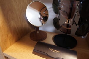 陶器やバスケット素材じゃなく、無機質な雰囲気で引き締まるかなと思って。